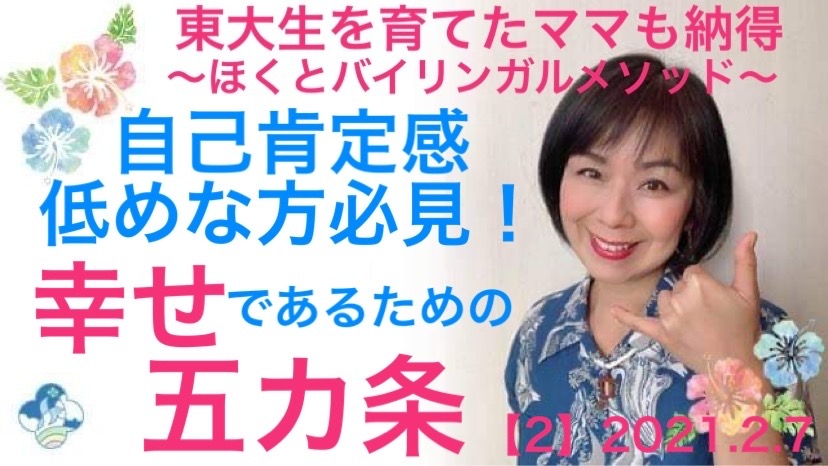 【子育て】自己肯定感低めな方必見!「幸せであるための五ヵ条」